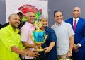La Junta Municipal de San Luis y el Patronato del Play de Softball Luis Pérez, entregaron sendas placas de reconocimiento al presidente ejecutivo de Banreservas, por su respaldo a esa localidad y al deporte en particular.