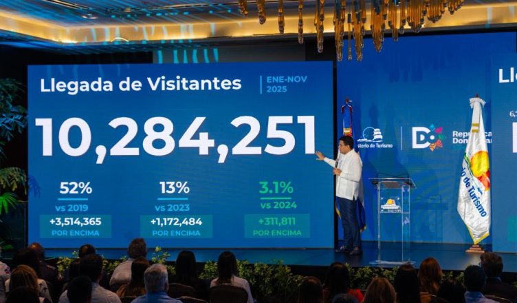 República Dominicana recibió más de 10.2 millones de visitantes (10,284,251) en los primeros 11 meses de este año, cifra que según el ministro de Turismo David Collado, garantiza un cierre récord en llegadas al finalizar este año 2025.