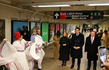 Frente a las bajas temperaturas de la ciudad de Nueva York, la estación 42 de la terminal Grand Central y seis vagones del Metro brindan una grata calidez que va más allá de su sistema de calefacción, República Dominicana, su alegría y su sonrisa, están presentes en el populoso sistema de transporte de la Gran Manzana.