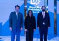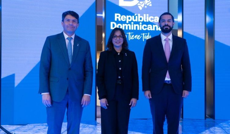 Guillermo Méndez, vicepresidente ejecutivo de Banca Corporativa y Empresarial del Banco BHD; Josefina Navarro, vicepresidenta sénior de Comunicación Corporativa y Responsabilidad Social del Banco BHD, y Yerik Pérez, presidente de la Adoturd, ofrecieron la información en el marco de la Feria Internacional de Turismo (Fitur) 2026.